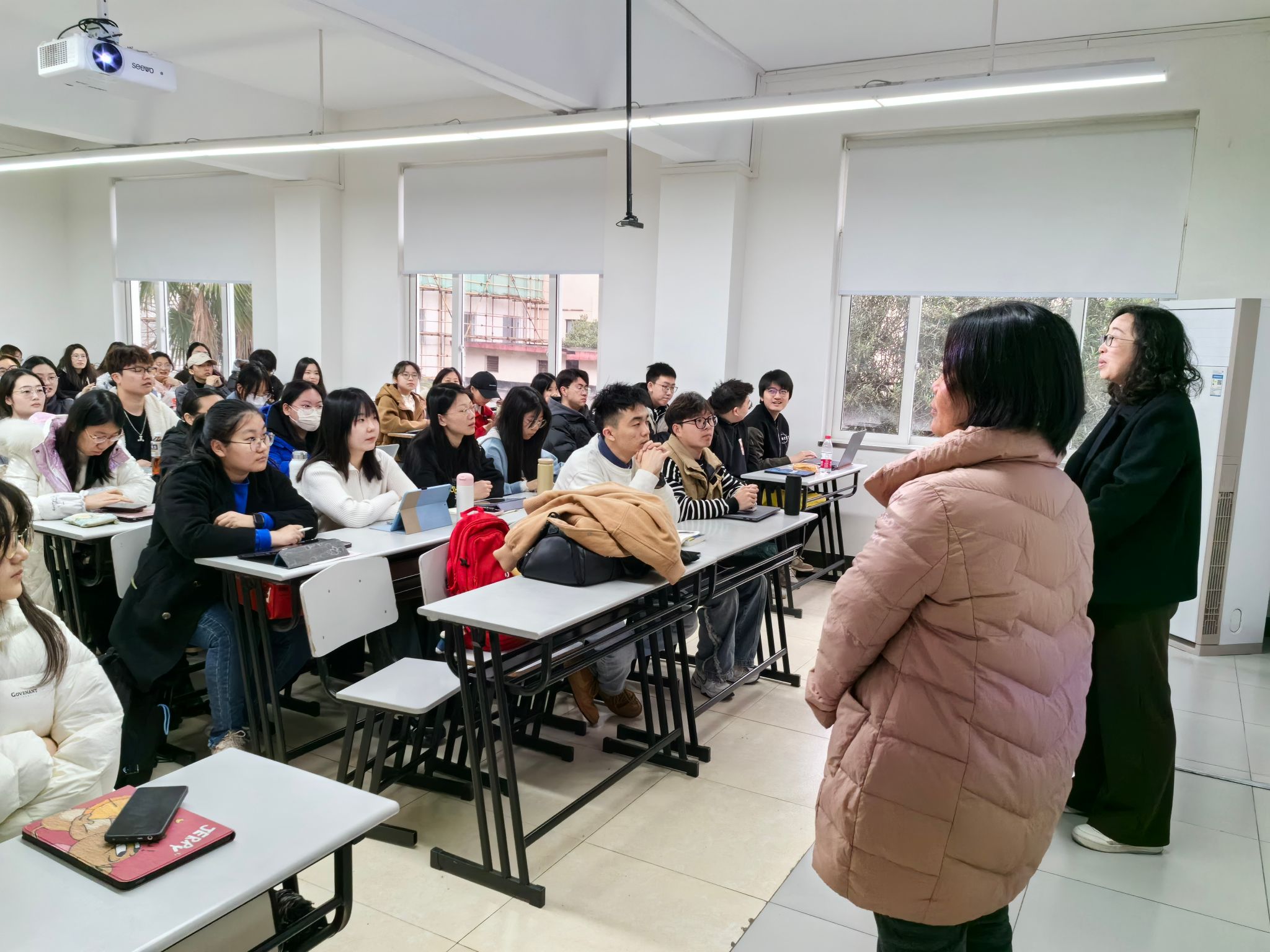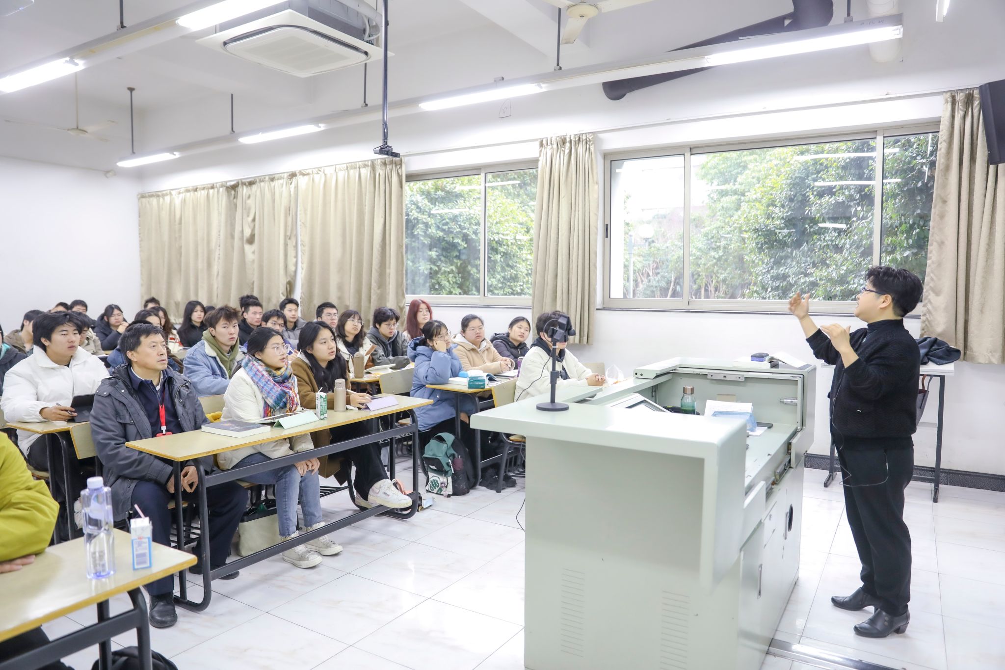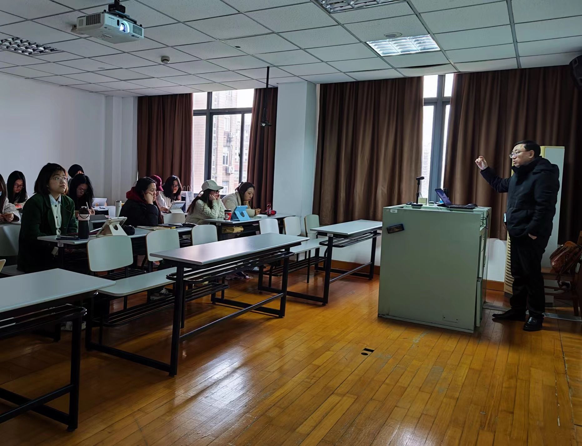 教务部、研究生院、悉尼工商学院等相关负责同志及教学管理人员在嘉定校区进行开学实地巡课,从悉尼工商学院文博楼、微电子学院A楼至第一二教学楼,覆盖本科生和研究生所有课程,详细检查了开学第一课的各项情况。巡课组分别走进“跨国公司投资”及“性别与社会”课堂听课。任课教师精神饱满,学生深度参与课堂互动,课堂气氛融洽。