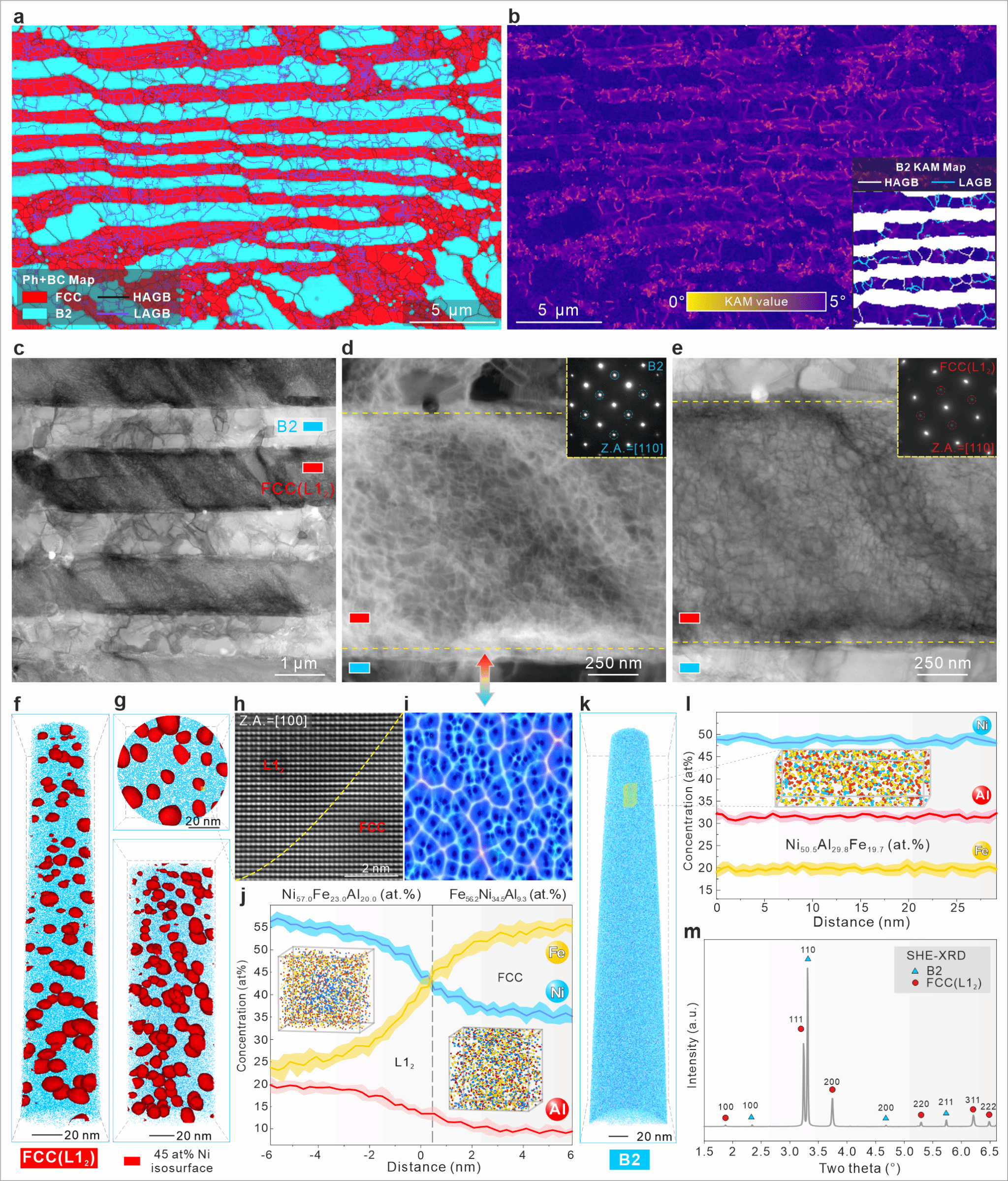 近年来,基于多主元的高熵合金逐渐成为设计强韧性材料的新范式,与传统合金相比,这种多主元合金具有更为广阔的成分设计空间。然而,随着主元数的增加,在提升强度的同时也不可避免地降低了合金的流动性,加剧了凝固时的偏析。即便采用复杂且耗时的机械热处理也难以完全消除这种铸造缺陷,对于制造理想微观结构和组织均匀的大型构件带来了重重挑战。共晶高熵合金(EHEAs)为解决上述困境提供了新的思路,由于共晶反应在凝固过程中不存在固液两相区(即糊状区),而是通过均匀双相层片的耦合生长,有效地抑制了化学成分偏析、缩孔等铸造缺陷。因此,共晶高熵合金的设计理念为材料的工程应用提供了广阔的前景。本研究以传统共晶合金为研究对象,使用成分简单的NiFeAl合金代替多主元合金,在兼顾制备工艺和制造成本的基础上达到了性能的协同提升。