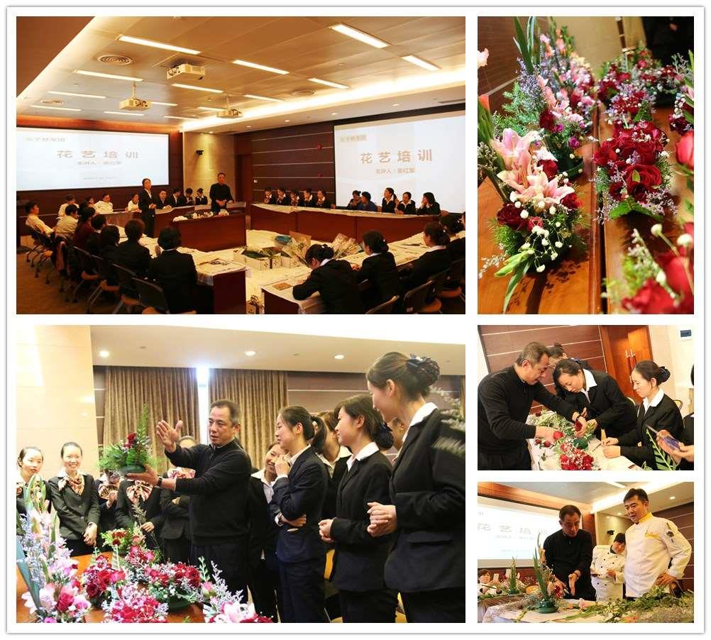 本次培训活动包括插花讲座和插花体验两个部分。姜老师向大家细致地讲解了插花要用到的容器和工具、插花造型、色彩应用及花的品种等内容,并亲手示范了“弯月形”和“倒七形”这两种造型的插花,他指出不论是哪种形状的插花,主要步骤有三步:首先,确定这种造型的线条和骨架。其次,确定焦点花的位置,焦点花要顺着线条走,枝条插入花泥2-3公分,花朵的颜色讲究“上小下大、上浅下深”。最后,用满天星等补花补叶。姜老师边讲解边实践,将深奥的造型原理巧妙地融入到美丽的鲜花造型中,在座的员工们都对插花表现出了极大的兴趣。讲座之后是插花体验环节,员工们三人一组,合作完成一种造型,她们兴趣盎然地练习着插花技艺,姜老师对每一个作品都做了细致的指导。最后经姜老师点评,评选出了两个最美的作品。