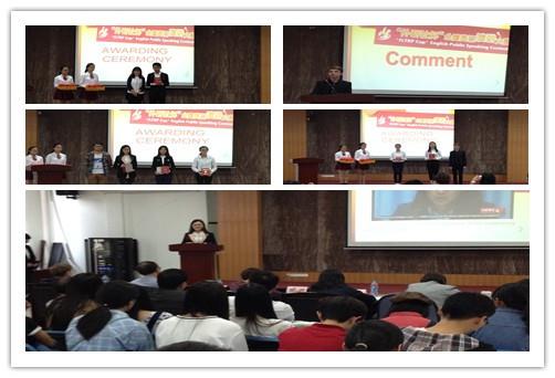 在紧张的分数统计之后,有两组选手因分数相同而产生加赛。顶着巨大的压力,4位选手丝毫没有怯场。经过激烈的角逐,最终产生特等奖一名,由外国语学院2014级同学毛宇星获得,其余选手分获一、二、三等奖。