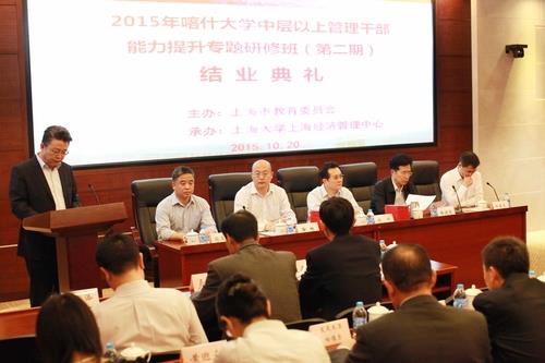 喀什大学地处南疆,借国家“一带一路”战略发展机遇,2015年4月正式由喀什师范学院更名为喀什大学,从而由一所以师范类专业为主的学院向多学科、门类更加齐全的综合性大学发展转变。在转型过程中,需要学校领导,包括中层以上管理干部必须统一思想和认识,具有更加前瞻性的发展思路,同时在工作水平、管理能力上也需要与综合性大学的内涵建设发展要求相适应。上海市对口支援新疆工作前方指挥部为更好地促成喀什大学的转型发展需要,委托上海市教委完成对喀什大学党委书记徐源智、校长艾尔肯·吾买尔等校领导在内的共计58名中层以上管理干部进行培训,于上半年6月份和下半年10月份,分为两期完成。