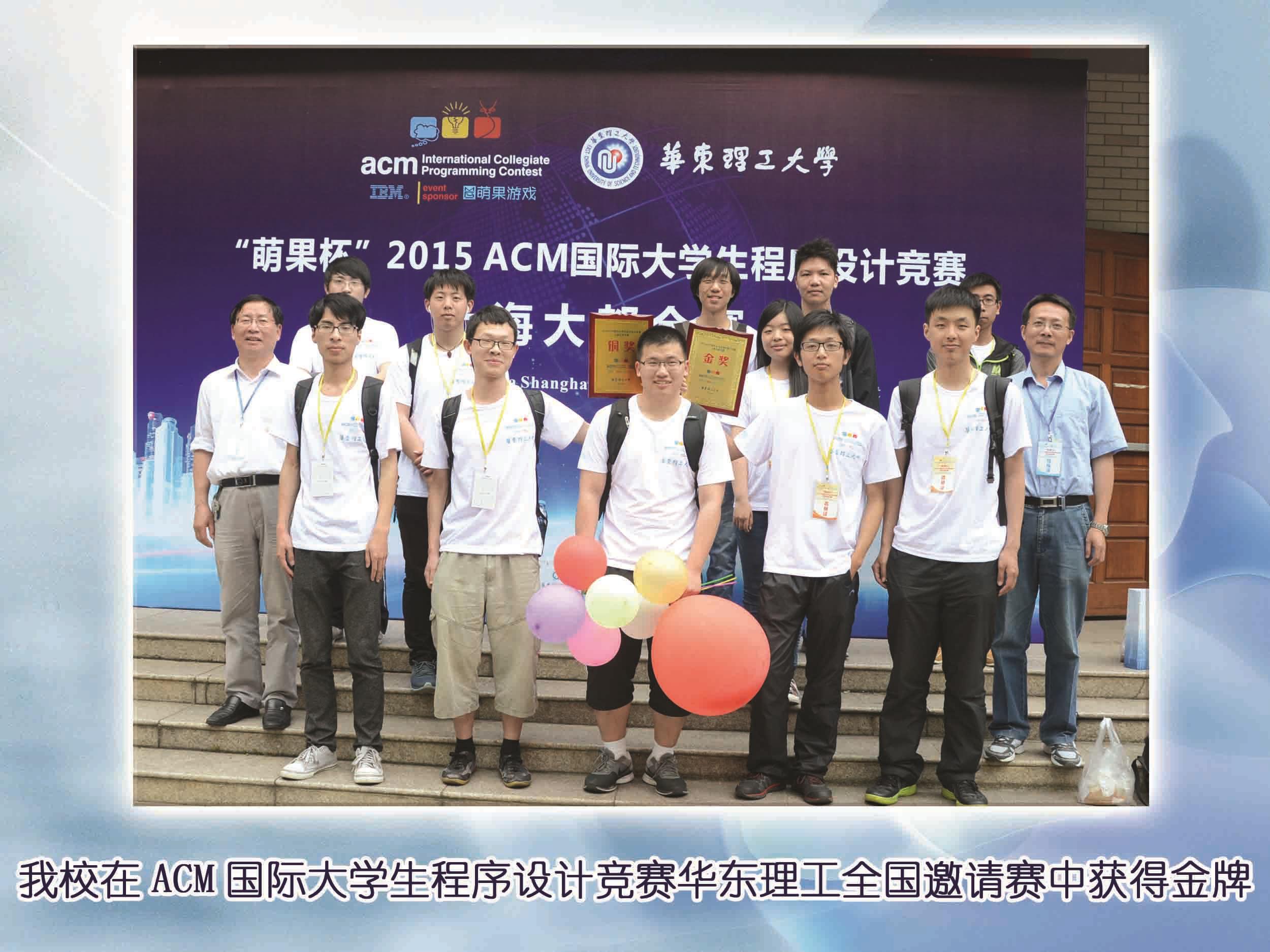 2015 ACM国际大学生程序设计竞赛上海区全国邀请赛于2015年5月23日至24日在华东理工大学拉开帷幕。本次比赛有来自全国的上海交通大学、复旦大学、南京大学等90多个高校的190多支高校队伍参赛。我校ACM队派出了来自计算机学院的高樱宁、梅俊、许燚、陈亮波、郑若奇、李钦、壮志、姚东恩、李嘉辉、罗一凡、孟仕超以及社区学院的潘文韬等12名同学组成的四支队伍参加了此次比赛,并由教练沈云付老师、李卫民老师带队参赛。