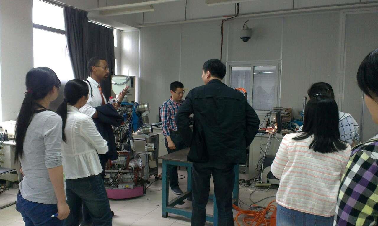 之后,Alleyne教授参观了上海市智能制造及机器人重点实验室,了解了实验室在各类机器人的开发应用方面所具备的实验研究条件及研究成果。同时,学生们就研究中遇到的学术问题进行了提问,Alleyne教授也针对性地在机械传动机构设计、控制决策方法及前馈控制应用方面进行了具体的指导。这次学术访问活动加深了双方对对方科研工作的了解,促进了两校的学术交流,开拓了师生的科研视野,为我校在智能制造及机器人控制方面的研究提供了新的思路。