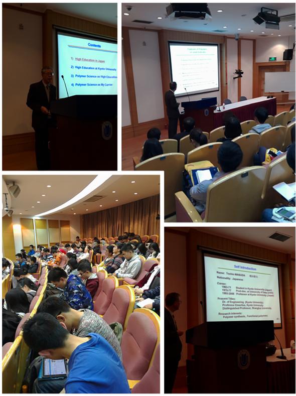 2015年4月17日下午,钱伟长学院讲坛第一讲由日本京都大学教授增田俊夫(Toshio Masuda)为师生们带来了一场别开生面的“日本高等教育与高分子科学”全英文报告。增田俊夫(Toshio Masuda)教授是国际著名高分子化学专家,主要研究方向包括聚合物合成、螺旋聚合物等。他也是著名杂志“POLYMER”副主编,日本化学会会员。曾获日本高分子科学会奖、日本化学会分区奖、日本高分子科学与技术特殊成就奖等诸多荣誉。