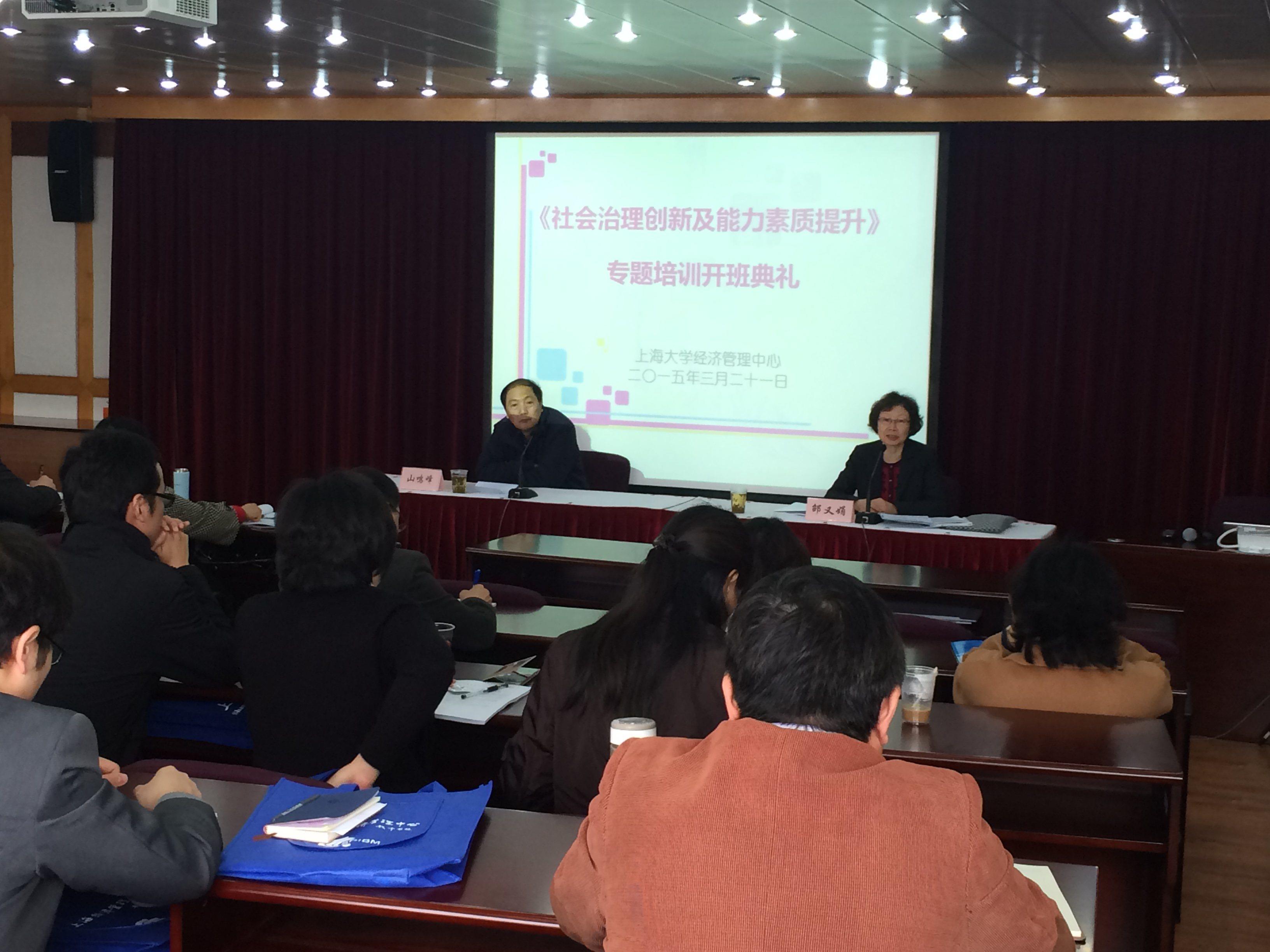 本次研修班内容紧扣2014年市委一号课题,围绕社会治理与创新展开教学安排。中心邀请了校内外众多知名学者和专家进行授课,3月21日开班并由我校文学院陶飞亚教授作第一讲。接下来还有7次课程,相信通过经管中心的精心安排,此次上海市卫计委的研修班培训工作定能达到预期效果,促进学员在社会治理创新和能力素质上得到切实提升。