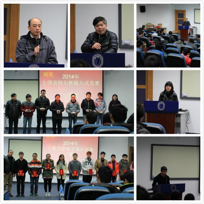 接着,通信学院执行院长王廷云分别宣读获奖名单,并由颁奖嘉宾依次为各类奖项获奖同学颁奖。获奖的同学代表郑月、彭希镇同学分别上台发言,分享了自己在竞赛中的成果与收获,以及经历的汗水与成功时的喜悦。之后指导老师代表李玉峰讲述了竞赛过程中的趣事,激发了低年级同学对于电子竞赛的热情与兴趣。