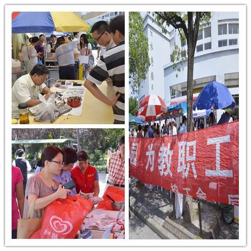 在我校庆祝第30个教师节的日子里,校工会继续联合后勤集团为大家带来了“接地气”的服务——“学习雷锋,庆祝教师节为教职工服务日活动”于9月15日中午水秀楼前广场如期举行。为了能赶上这次服务日,有的老师专程从延长赶了过来。你带来了早就准备好、需要修理的雨伞、手表,我为家人买了一些熟食点心,“因为是学校食堂做的,所以放心”。服务日现场,建设银行、交通银行的工作人员也来了,为老师们提供了工资卡功能、房贷政策、理财服务等咨询;沃尔沃汽车、昂立保健品、多种日常生活用品都提供我校教职工专享的内购价。一项项“接地气”的服务受到老师们的欢迎。