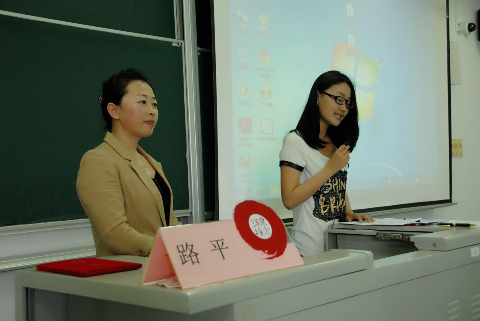 进而,路平老师从编播人员的专业性要求,联系到编辑播音的要求与能力的培养。为了帮助同学们理解,先是举例说明编辑与记者与播音员发声的区别,席间邀请几名同学朗读新闻稿,让同学们评判发声特点。让同学们感同身受的认识到,播报新闻是具有其专业要求的。声音悦耳,吐字规范,要有较强的语言表达能力,而发声还有其具体的原理——共鸣发声。说着,路平老师邀请全场一百多位同学一起站立,跟随她的动作来实践一下共鸣发声技巧。双手叉腰,就像说悄悄话一样,既要努力说得让对方听到,又不要发出声音让周围人听到,念:八百标兵奔北坡⋯⋯