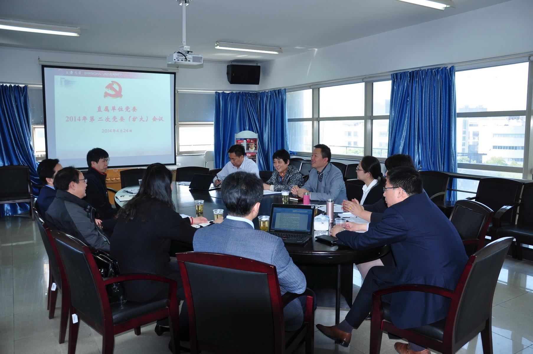 4月24日上午,直属单位党委在校本部D楼直属单位教工之家召开2014年第二次党委(扩大)会议,讨论近期工作,传达相关会议及文件精神。会议由直属单位党委书记陆翠兰主持,直属单位党委委员及所属单位负责同志参加了会议。