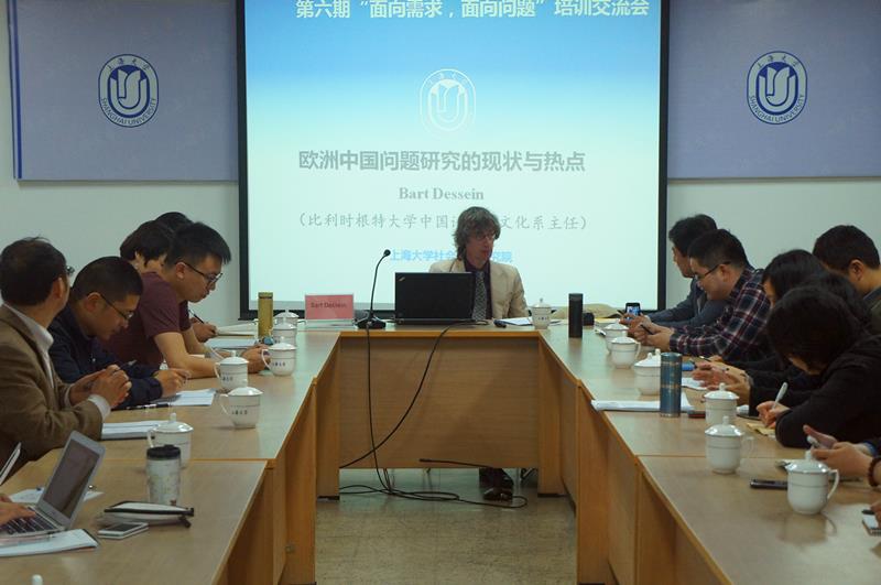 2014年4月17日上午,由我校社会发展研究院主办的“面向需求,面向问题”第六期文科研究中心交流培训会在校本部行政楼501会议室如期举行。此次培训会针对“欧洲中国问题研究的现状与热点”,特邀比利时根特大学中国语言与文化系主任Bart Dessein教授来校,与学校各文科中心代表和社会科学领域的专家学者进行深入交流。培训会由社会发展研究院张恒龙院长主持,逾40名文科学院科研负责人和相关学科教师出席交流会。