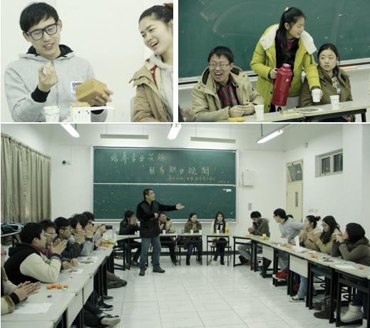 此次迎春茶话会非比寻常。是由班主任严伟老师发起,得到同学们强烈响应,邀请已经参加工作的影工07级学长返校,面对面地与我们交流学习工作经验的茶花会。当初得知这一消息时,我们每个人都觉得这是一次难得的机会。和已经经历毕业和工作的学长们谈谈心里话,不仅能为自己内心的迷茫找到出路,而且能得到对自己非常有益的资源。在中午布置会场时,我们每个人都心怀期待,雀跃的欢喜溢于言表。