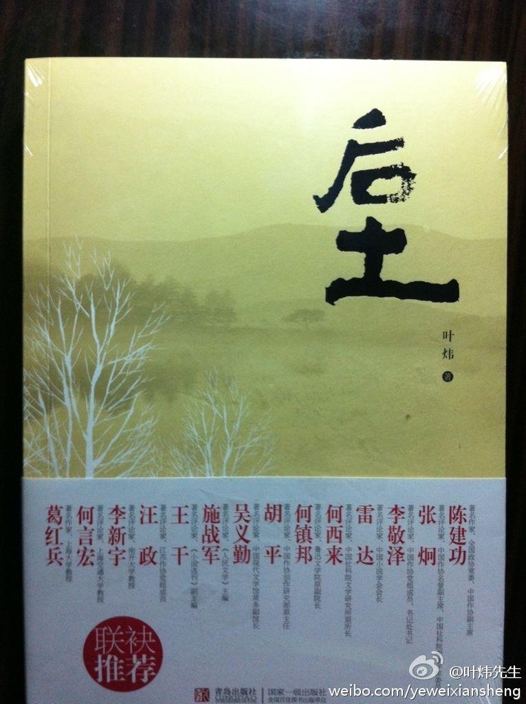 近日,我校文学与创意写作研究中心葛红兵老师的博士研究生刘业伟(叶炜)长篇小说《后土》由国家一级出版社青岛出版社出版发行。此前,素有“中国的《纽约客》”美誉的《作家》杂志发表了这部小说。这也是叶炜创作出版的第六部长篇小说。